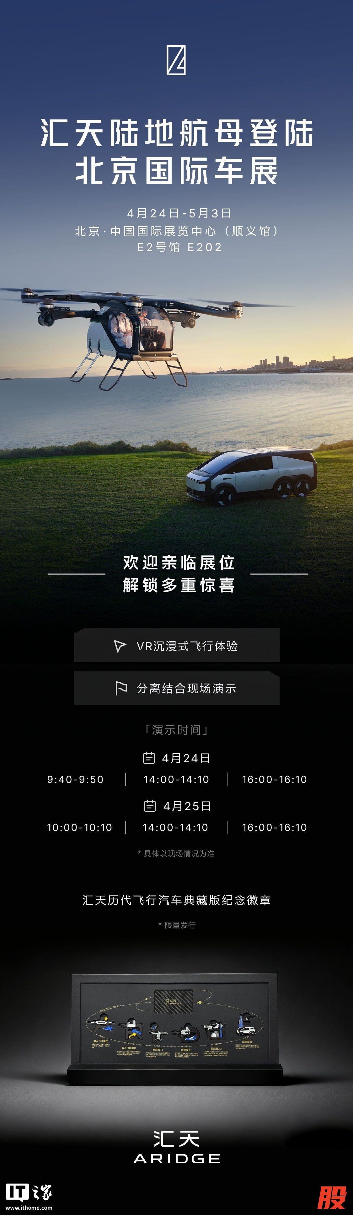 IT之家 4 月 27 日消息,2026 北京车展已于 4 月 24 日开幕。小鹏汇天陆地航母也“空降”本次车展,用户亲临展位可进行 VR 沉浸式飞行体验、观看分离结合现场演示。